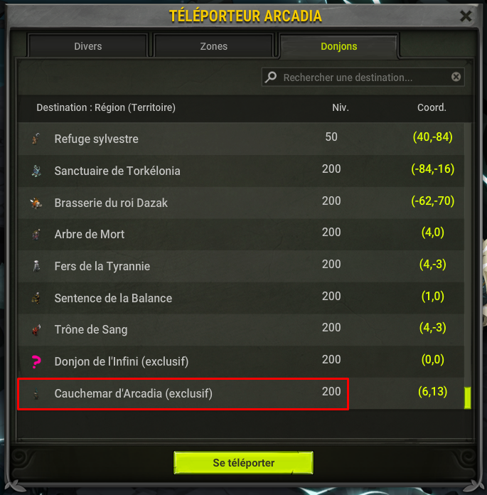 Une fois la clef acquise, vous pourrez vous téléporter au donjon via le Teléporteur de Donjon.
